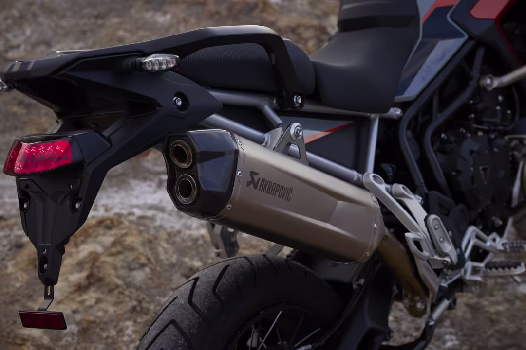 Usability upgrades: For the first time on a Triumph adventure bike, those who opt for Alpine 900 get an Akrapovič silencer as standard.