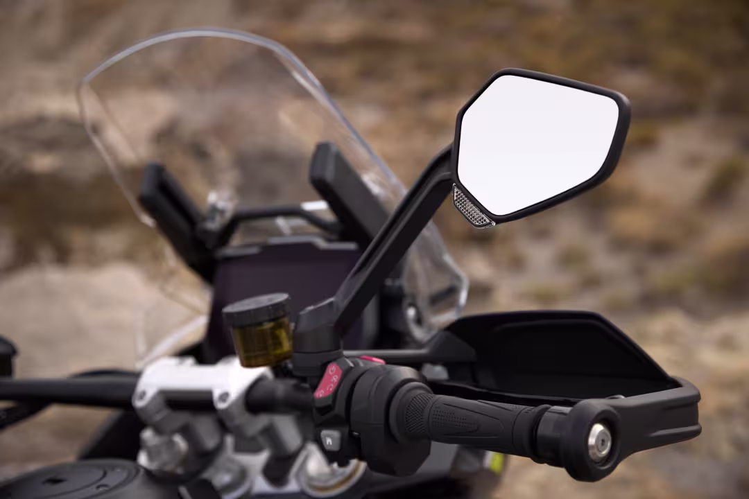 Protection & comfort extras: Engine protection bars (on the 900), and, on the 1200, heated rider and pillion seats, radar-based safety aids (Blind Spot & Lane Change Assist), and semi-active suspension come as standard.