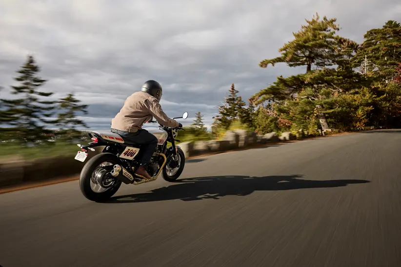 This gives the Thruxton 400 a lively, responsive feel — plenty for spirited riding while still approachable for new and intermediate riders.